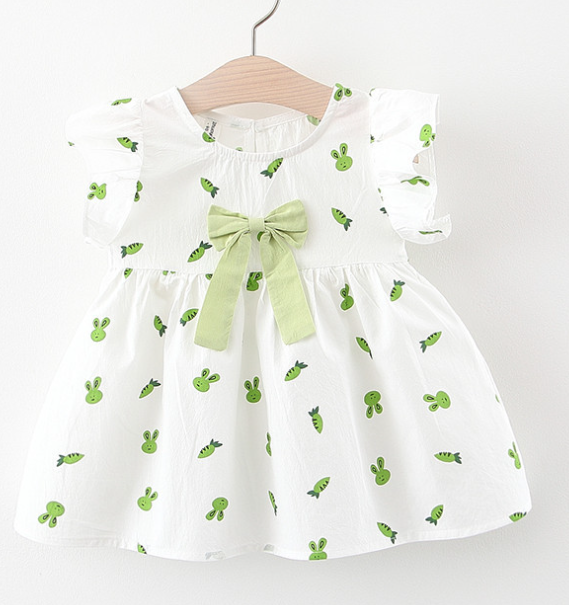 Available in a charming array of colors including Pink, Yellow, and Green, each featuring an adorable bunny carrot skirt design, your child will feel like royalty. The dress is offered in multiple sizes ranging from 73cm to 110cm, ensuring the perfect fit for every little princess.