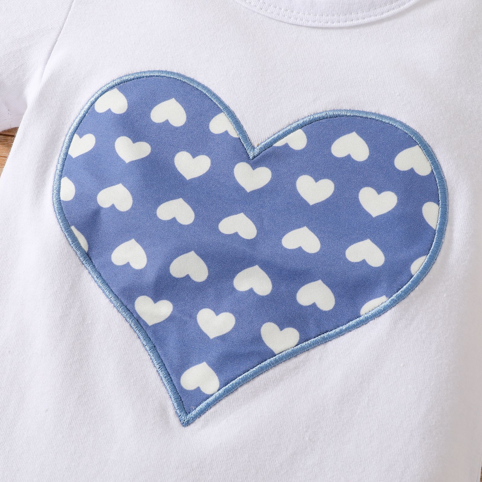Check out the adorable heart-shaped prints that add a playful touch to this chic outfit, ensuring your little one looks as cute as she feels.