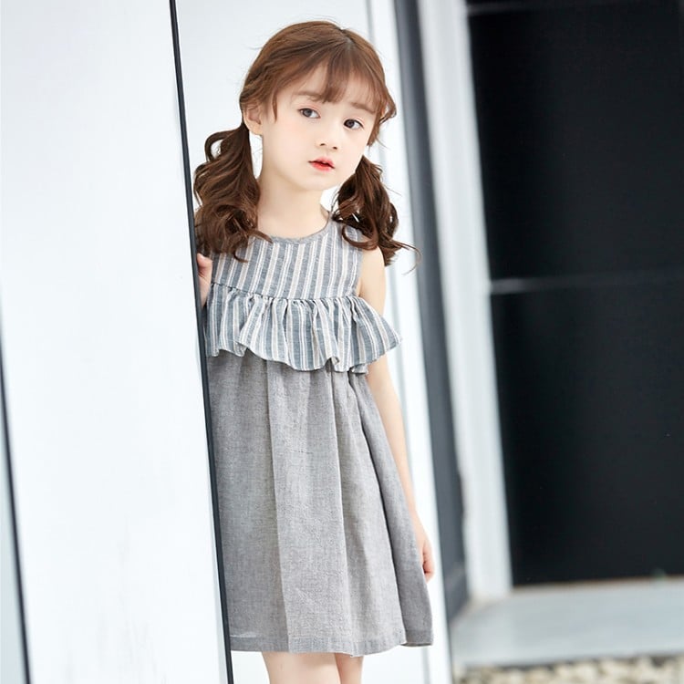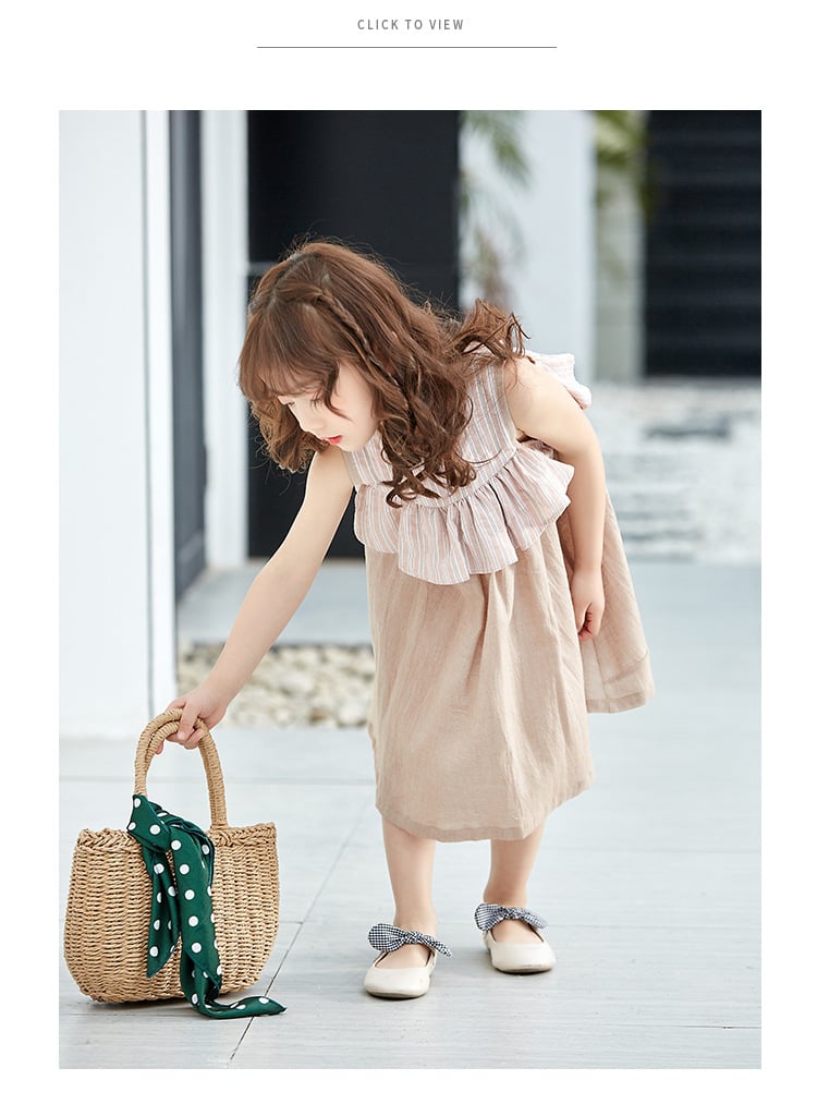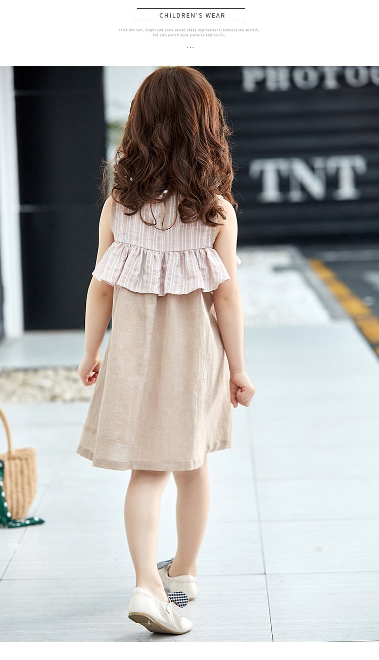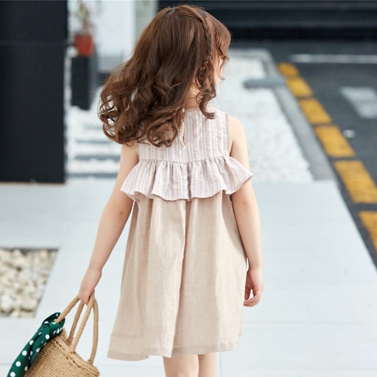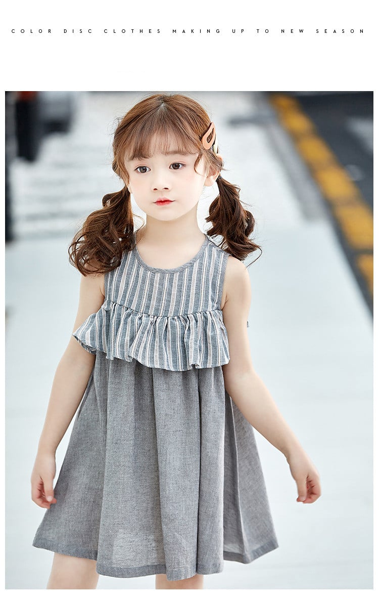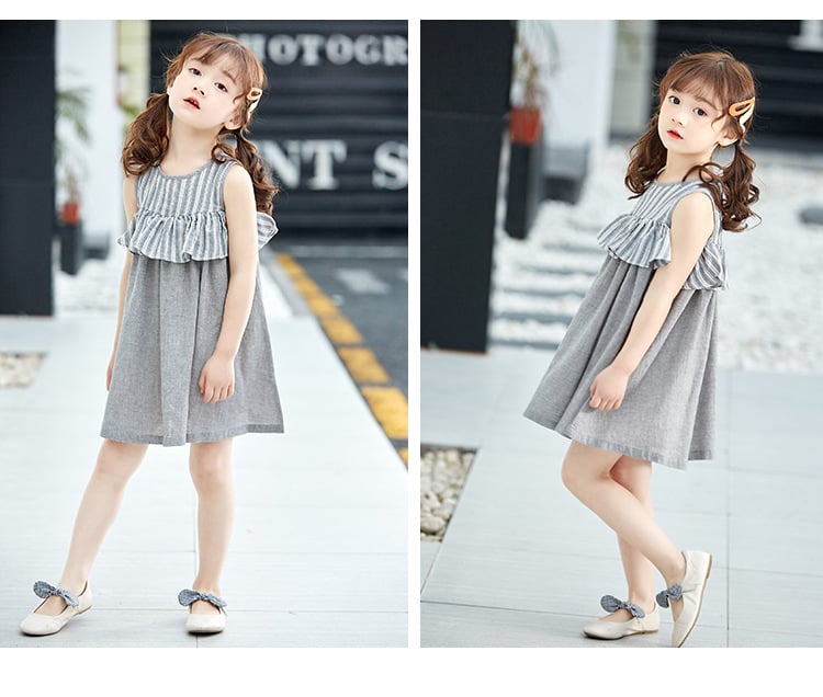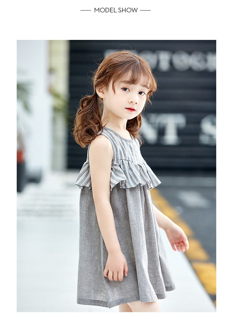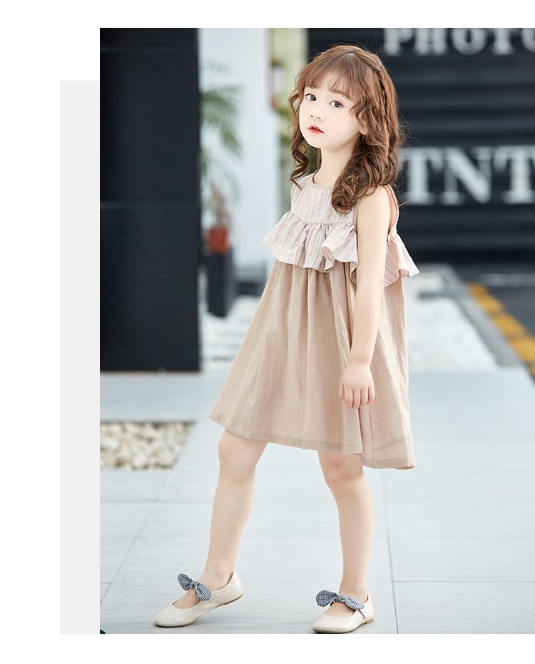 Elevate your little girl's wardrobe with our stunning sleeveless ruffled dress. Crafted from a soft and breathable cotton blend, this dress is designed to keep her comfortable while looking absolutely adorable. The ruffled detailing adds a playful flair, making it the perfect choice for any occasion, whether it's a birthday party, family gathering, or a fun day out in the sun.